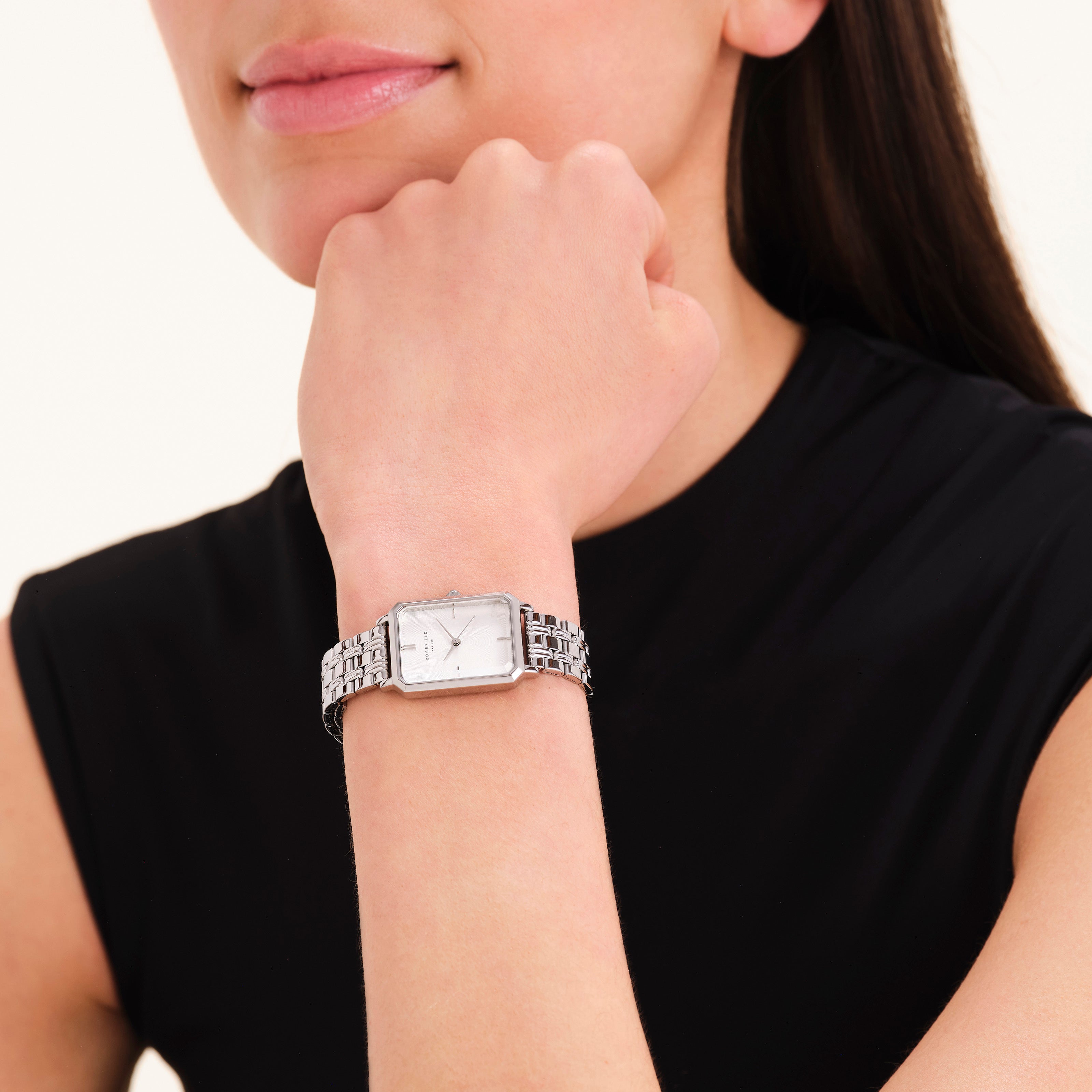 The Octagon est notre nouvelle collection de montres au style à la fois moderne et classique. Son boîtier octogonal résolument rare et son bracelet métallique à 5 maillons évoquent l'élégance des années 20 et en font un véritable accessoire de mode.